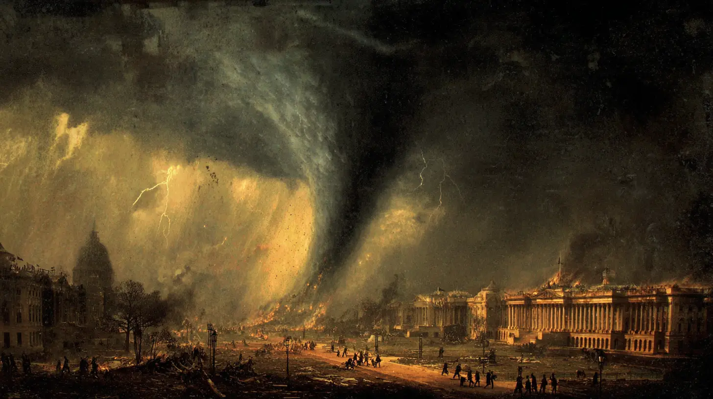 Less than four days after the British set Washington ablaze, a massive storm tore through the capital. Possibly a hurricane. Definitely a tornado. It touched down on Constitution Avenue, picked up two British cannons, carried them through the air, and dropped them yards away. It killed British soldiers and American civilians. The winds were so violent the British troops left faster than planned. Some historians say the storm caused more damage than the British did.