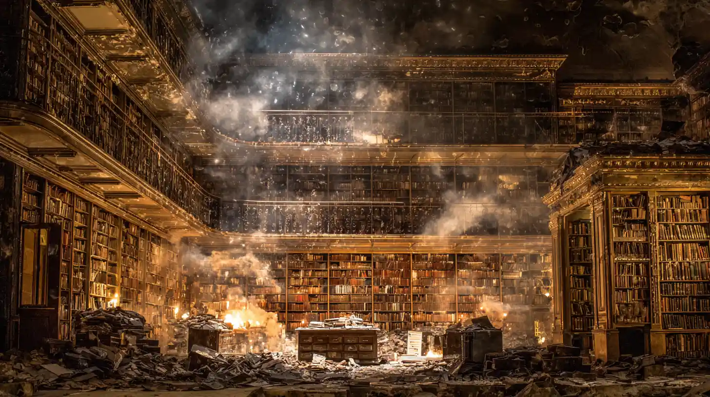 The Capitol housed the Library of Congress in 1814. When the British set fire to the building, they destroyed the entire 3,000-volume collection. The flames consumed books, decorations, sculptures, columns, and pediments. Wooden ceilings and floors burned completely. Glass skylights melted. The superintendent calculated the total damage to the Capitol at $787,163.28 (about $11.8 million today). Thomas Jefferson later sold his personal library to the government to rebuild the collection.