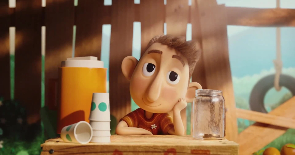 Two unnamed characters fell in love in "A Love Story." Passion Pictures created the animation, directed by Saschka Unseld. Brittany Howard and Jim James sang a duet of the Backstreet Boys' "I Want it That Way." The romance unfolded against themes of sustainable food.
