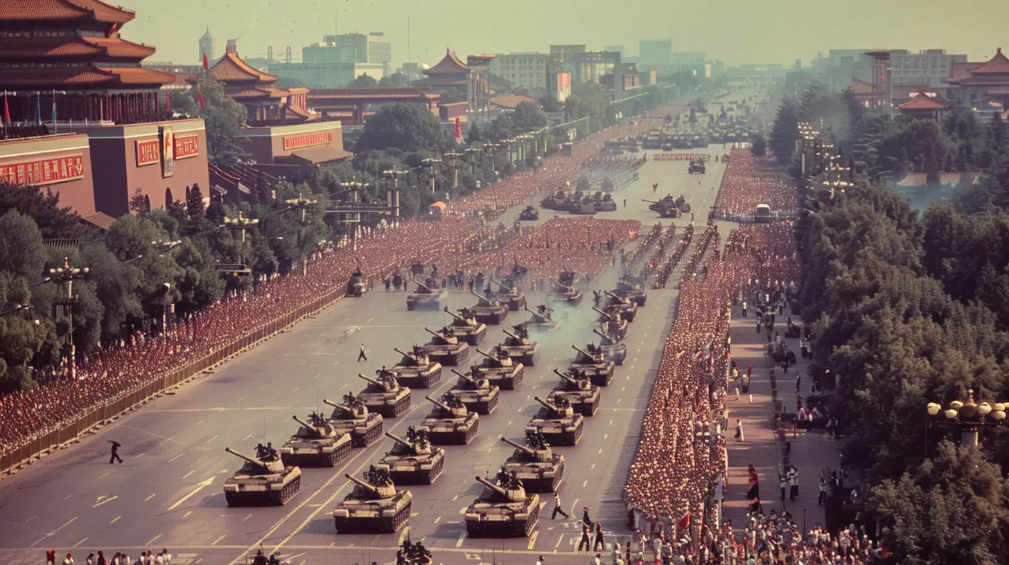 Live TV coverage at the time showed large crowds of protesters in Beijing, iconic images like the "Tank Man" confronting a column of tanks, and scenes of chaos and violence as the military moved to clear the square.