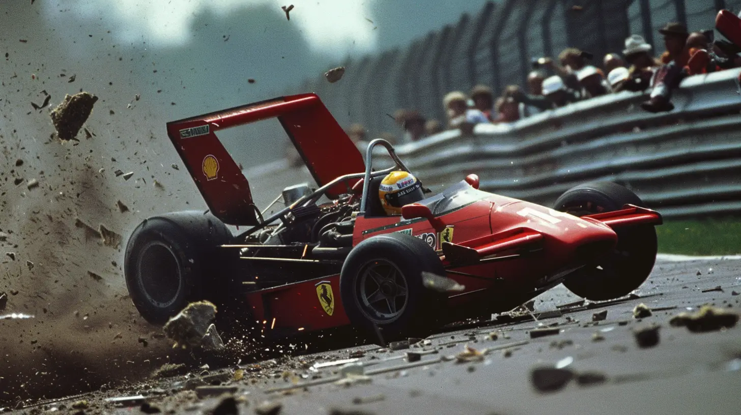 The live television coverage of Gilles Villeneuve's fatal crash at Zolder in 1982 captured the horrific scene as it unfolded, showing Villeneuve's Ferrari cartwheeling through the air and across the track.