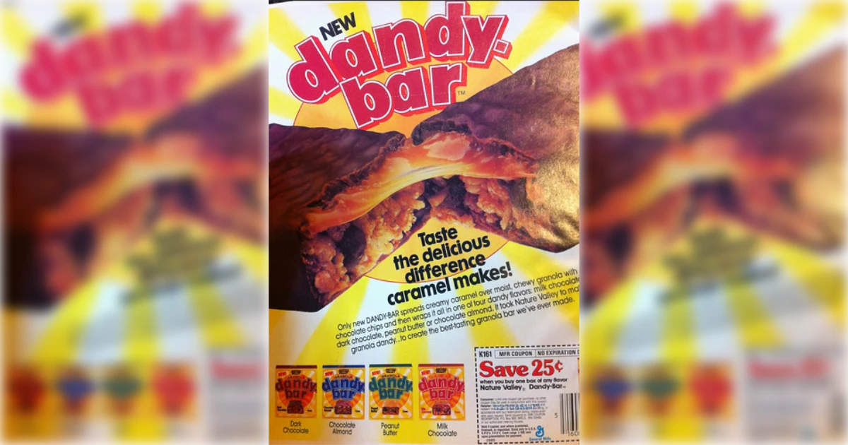 General Mills panicked in the mid-1980s when Quaker grabbed market share. Their answer was Dandy Bars. These were granola bars that were basically candy. Milk chocolate-coated caramel centers in four flavors: peanut butter, dark chocolate, milk chocolate, and chocolate almond. Each bar was stuffed with chocolate chips and nuts. Dandy Bars flopped. But General Mills stuck with Nature Valley in other forms.