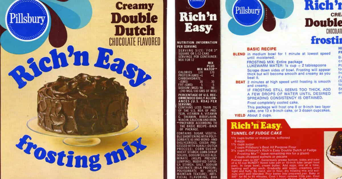 This frosting mix was a key ingredient in the Tunnel of Fudge Cake, which won second place at the 1966 Pillsbury Bake-Off. That cake made Bundt pans a household item.