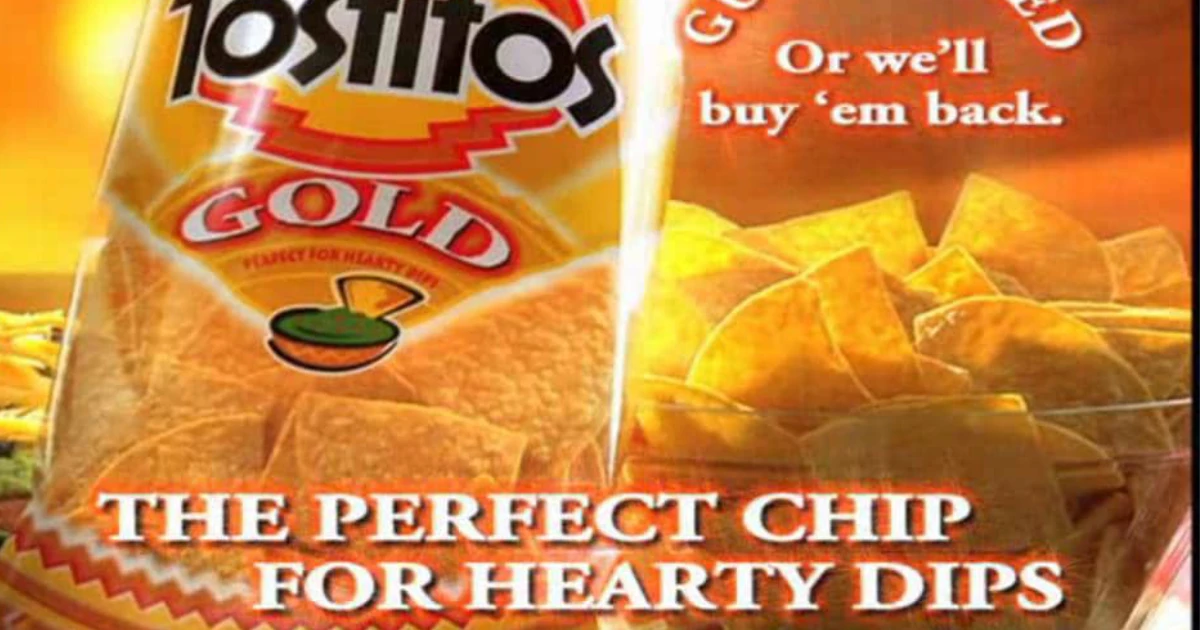 These thicker chips were built to hold heavy dips. Frito-Lay marketed them as strong enough for "the thickest of dips." They sold well at first, then quietly vanished. The company never announced when or why. Tostitos Gold still exists in Western Canada, made with premium yellow corn.