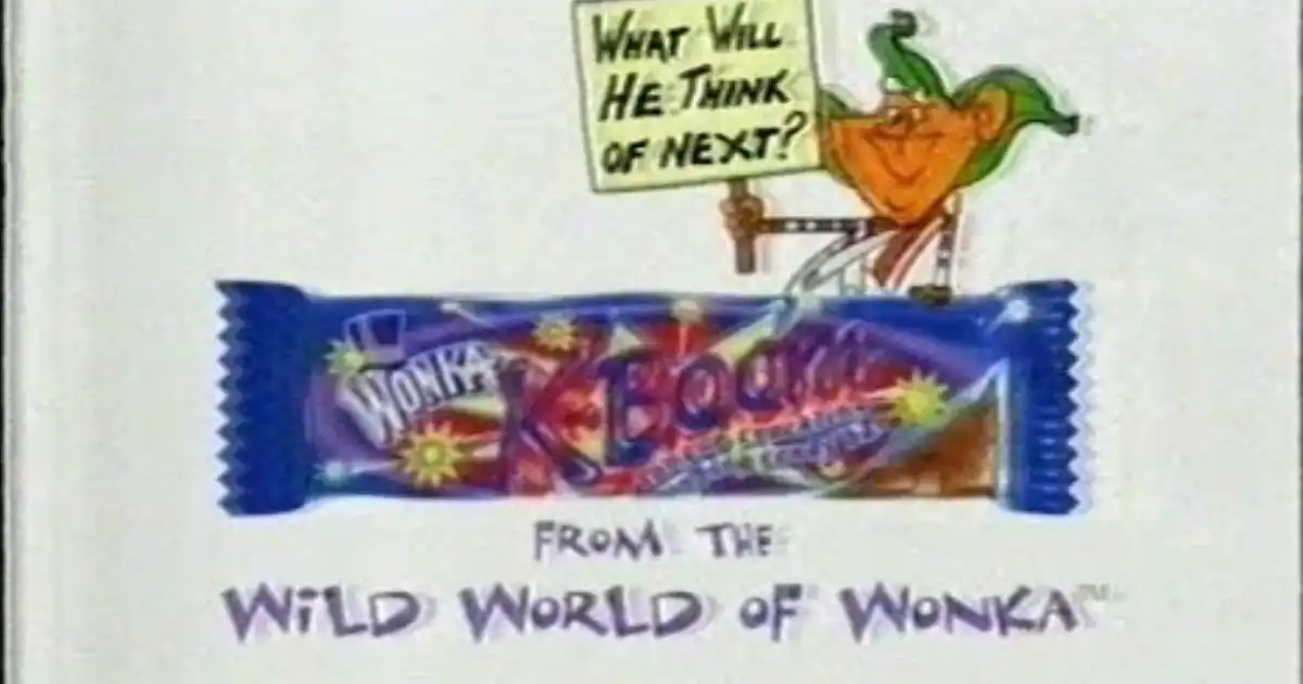 Chocolate chunks filled with popping candy, released in 1998. They were given different names by region: Xploder in the UK, K-Boom in Australia and New Zealand, Tinglerz in the US. American wrappers called them "poppin' tinglin' chocolate candy." Nestlé killed all versions after two years.
