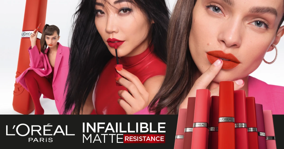 L'Oréal released Infallible Paints in January 2017 as a bold liquid lip color with a matte-lacquer finish. The pointed applicator drew precise lines. Shades included Navy, Taupeless, Bewitching Bordeaux, Fearless Fuschia, and Sultry Sangria. The formula started vibrant but sheared out as it wore. It didn't dry lips like other liquid mattes.